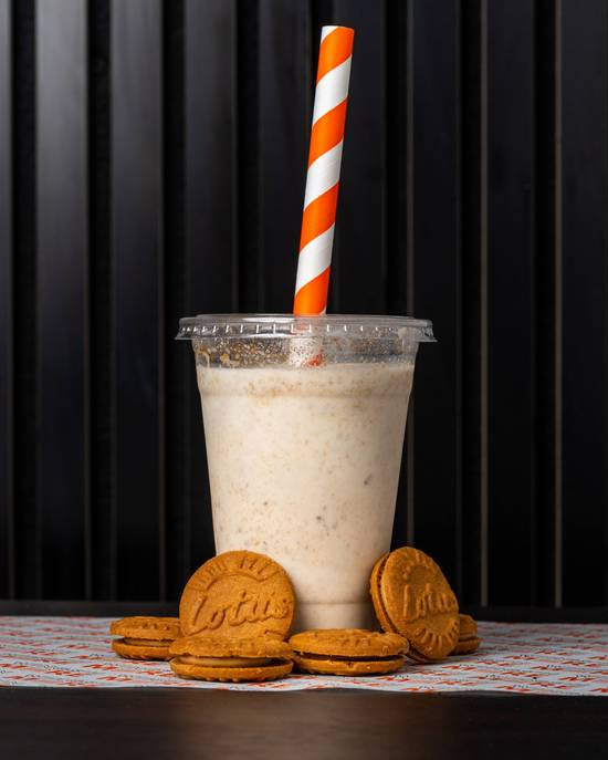 Creamy milkshake blended with Biscoff for a sweet, spiced flavor delight.