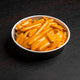 Large portion fries layered with cheese sauce and drizzled with sour cream.